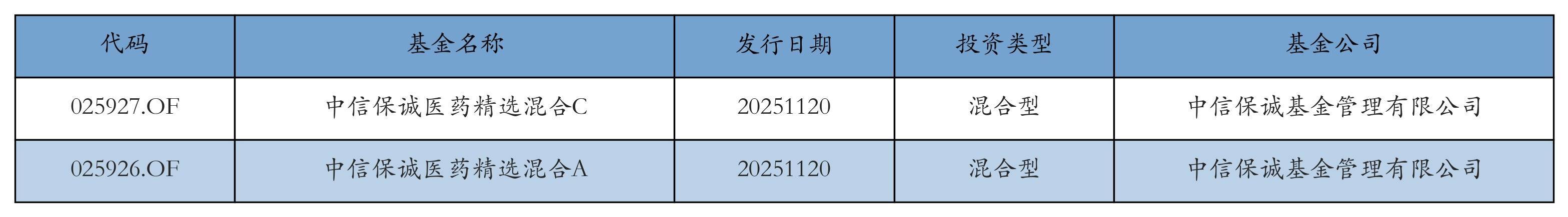 昨日有2只新基金发行,分别为:中信保诚医药精选混合C、中信保诚医药精选混合A,详情见下表: